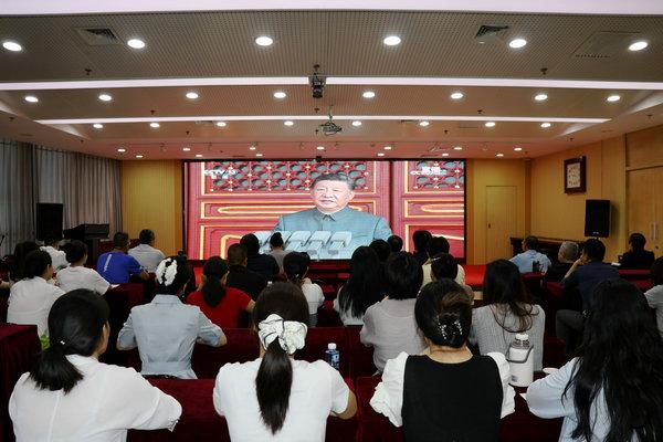 觀看現(xiàn)場(chǎng)氣氛莊重?zé)崃?,全體人員全神貫注、心潮澎湃。屏幕上,受閱部隊(duì)官兵軍容嚴(yán)整、意氣風(fēng)發(fā),新型武器裝備悉數(shù)亮相、威武雄壯,充分展示了新時(shí)代國(guó)防和軍隊(duì)建設(shè)的輝煌成就,展現(xiàn)了人民軍隊(duì)的強(qiáng)軍風(fēng)采和中華民族走向偉大復(fù)興的鏗鏘步伐。英姿颯爽的隊(duì)伍、整齊劃一的步伐、鏗鏘有力的口號(hào),無(wú)一不令人熱血澎湃,引發(fā)了現(xiàn)場(chǎng)強(qiáng)烈共鳴和陣陣掌聲。